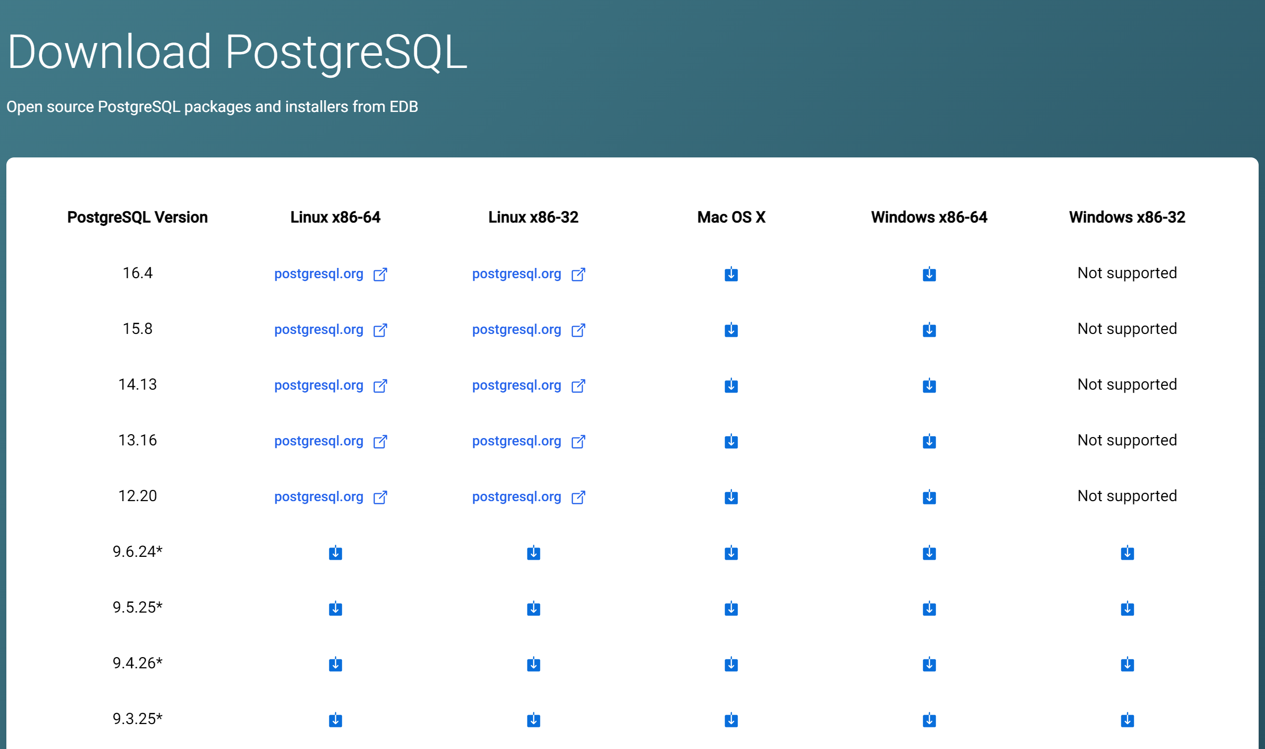 要在您的计算机上本地安装 PostgreSQL,请访问 EDB 提供的安装程序,下载与您的操作系统兼容的最新版本。
