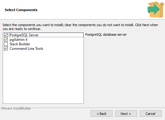 要使用 PostgreSQL,您需要安装 PostgreSQL Server。在本教程中,我们还将使用 pgAdmin 4 组件和命令行工具: