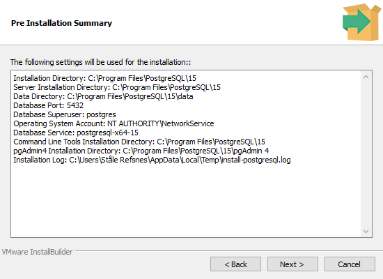 您可以指定 PostgreSQL 的位置,我将选择默认选项: