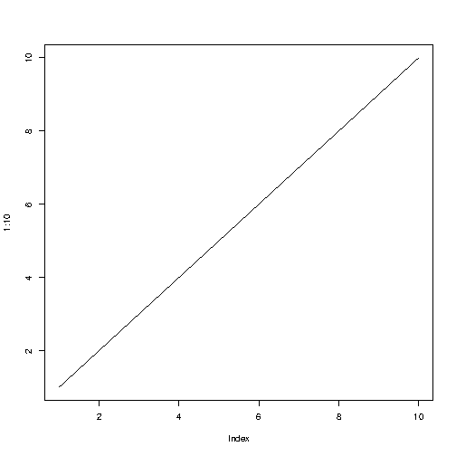 line1 <- c(1,2,3,4,5,10) line2 <- c(2,5,7,8,9,10) plot(line1, type = "l", col = "blue") lines(line2, type="l", col = "red")
